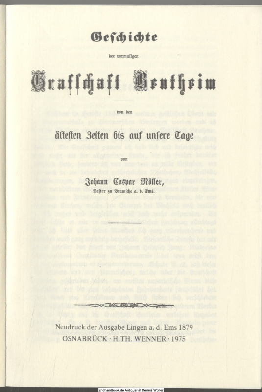 536 S.; ; 20 cm, Orig.-Leinen ohne Schutzumschlag. Neudr. d. Ausg. Lingen a. d. Ems 1879. Kontaktdaten des Herstellers: H. Th. Wenner GmbH & Co. KG Heger Str. 3 49074 Osnabrück