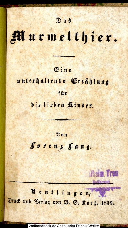 Das Murmelthier : Eine unterhaltende Erzählung für die lieben Kinder