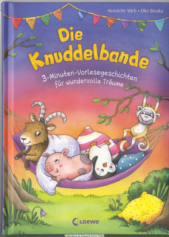 123 Seiten : Illustrationen ; 25 cm. Ecken bestoßen. Willkommen auf dem Regenbogenhof! Hier lebt die Knuddelbande . Das sind Pinguin Knut, Minischwein Marta, Äffchen Hicks und Steinbock Rocky. Gemeinsam erleben sie die besten Abenteuer. Ob nun Geburtstag gefeiert wird oder die neuen Ponys für Wirbel sorgen - in dem kleinen Zoo ist immer etwas los! Und jeden Abend vor dem Schlafengehen kuschelt sich die Knuddelbande eng aneinander und wünscht sich eine gute Nacht. Dieses Vorlesebuch, liebevoll geschrieben von Henriette Wich (Die 3 !!!), enthält 45 kurze, in sich abgeschlossene 3-Minutengeschichten und ist genau das Richtige für kleine Zuhörer ab 4 Jahren und das gemeinsame abendliche Vorlesen und Kuscheln. Viele alltagsnahe Themen, die Kinder bewegen, wie Freundschaft, Angst im Dunkeln, Streit und Versöhnung, Eifersucht, Hilfsbereitschaft, Geburtstag u.v.m sind hier versammelt und bieten viel Identifikationspotential. Mit zahlreichen, bunten Bildern von Elke Broska. Kontaktdaten des Herstellers: Loewe Verlag GmbH, Bühlstr. 4, 95463 Bindlach, Deutschland, vertrieb@loewe-verlag.de, Kontaktdaten des Inverkehrbringers: Antiquariat Dennis Wolter, Hauptstr. 10, 37181 Hardegsen, info@2ndhandbook.de