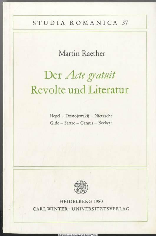 / i. d. Literatur , Spontaneität / i. d. Literatur , Gide, André / Literatur über die Werke , Sartre, Jean-Paul / Literatur über die Werke , Acte gratui Lagerbestand: 1