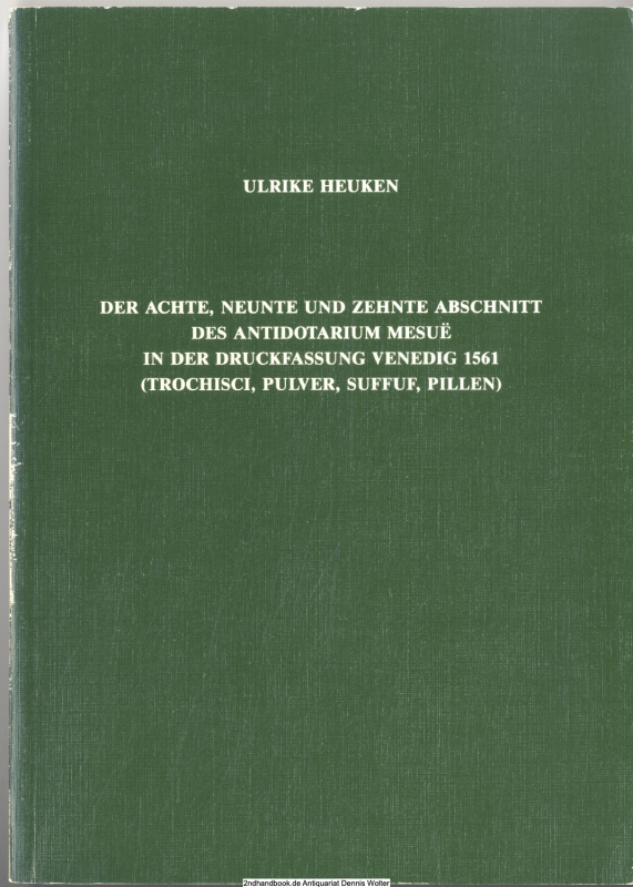 Der achte, neunte und zehnte Abschnitt des Antidotarium Mesue in der Druckfassung Venedig 1561 : (Trochisci, Pulver, Suffuf, Pillen) ; Übersetzung, Kommentar und Nachdruck der Textfassung von 1561