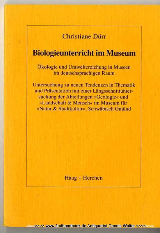 234 S. : graph. Darst. ; 21 cm, Orig.-kart. Zugl.: Schwäbisch Gmünd, Pädag. Hochsch., Diss., 1991. Angesichts der katastrophalen Lage in der sich unsere Umwelt befindet und der leider noch immer größtenteils Desinteresse zeigenden Weltbevölkerung ist es an der Zeit den jungen Generationen ein Bewusstsein für ihre Umwelt zu verschaffen. Die Schulpädagogik stößt da mitunter an ihre Grenzen, sei es wegen persönlicher fehlender Kapazitäten oder vorgegebener schulischer Ressourcen. Ein Museum ist da deutlich besser vorbereitet, auch wenn es eher mit Vergangenheit und weniger mit Zukunft verbunden wird. Dennoch gibt es Ansätze beides miteinander zu verbinden, Museum und Schule. Sogenannte Museumspädagogik, hier am Beispiel des Biologieunterrichts in Verbindung mit dem Museum in Schwäbisch Gmünd untersucht. HAAG + HERCHEN Verlag GmbH Geschäftsführerin: Dörthe Emig-?Herchen Anschrift: Schwarzwaldstraße 23 D-?63454 Hanau Telefon: 06181.520670.0 Telefax: 06181.520670.40 verlag@?haagundherchen.?de www.haagundherchen.de