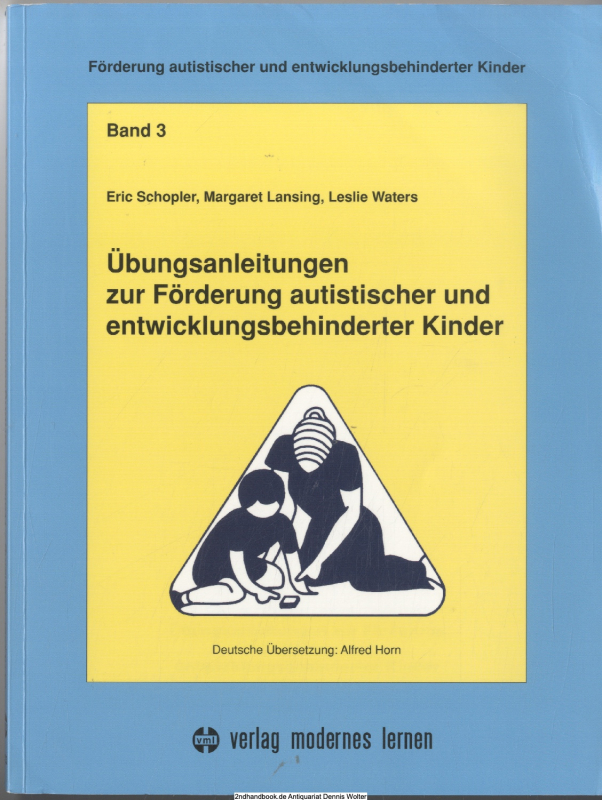 5. Aufl., 255 S. : Ill. ; 28 cm, Orig.-kart. Ecken bestoßen, Einband knickspurig. Dieser Band gibt die konkreten Übungsanleitungen, die in Zusammenarbeit mit Mitarbeitern und Eltern des TEACCH Programs für folgende Bereiche erarbeitet wurden: Imitation, Wahrnehmung, Grobmotorik, Feinmotorik, Auge-Hand-Koordination, Kognitive Leistungen, Sprache, Selbsthilfefunktionen, Soziale Fähigkeiten, Verhaltensauffälligkeiten. Kontaktdaten des Herstellers: verlag modernes lernen Borgmann GmbH & Co. KG, Schleefstr. 14, Dortmund, 44287, DE, info@verlag-modernes-lernen.de, Kontaktdaten des Inverkehrbringers: Antiquariat Dennis Wolter, Hauptstr. 10, 37181 Hardegsen, info@2ndhandbook.de