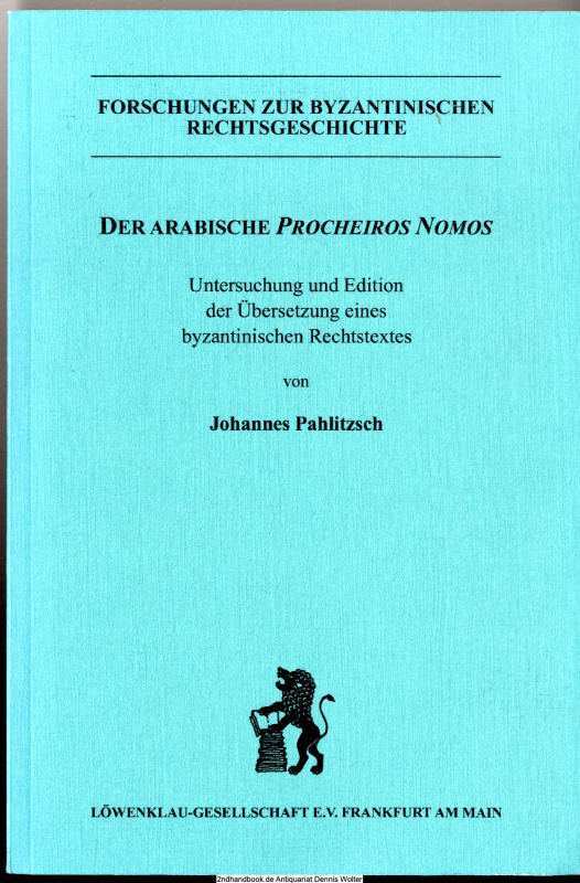 VIII, 174, 176 S. ; 24 cm, 650 g., Orig.-kart. Forschungen zur byzantinischen Rechtsgeschichte ; Bd. 31. Literaturangaben. Ecken leicht bestoßen, Schnitt etwas fleckig. Kontaktdaten des Herstellers: Sascha Hendel Diedenhofer Straße 11, D-10405 Berlin E-Mail: archinf@archINFORM.de