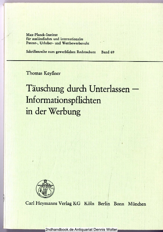 Täuschung durch Unterlassen - Informationspflichten in der Werbung : rechtsvergleichende Unters. zum dt., schwed. u. dän. Recht