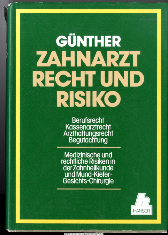 Zahnarzt, Recht und Risiko : Berufsrecht, Kassenarztrecht, Arzthaftungsrecht, Begutachtung ; med. u. rechtl. Risiken in d. Zahnheilkunde u. Mund-Kiefer-Gesichts-Chirurgie